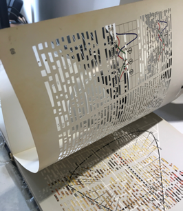 No hay silencio que no termine, de Ingrid betancourt fue el libro que tome para efectuar la reconstrucción bajo un nuevo orden a partir de la instalación de seis cortinas en forma de paneles, esbozadas con los recortes de todas las páginas del texto, que señalaban en su estado de sosiego el origen o un nuevo renacer que nos eleva. El papel se muestra en su máxima desnudez, en su pureza, en su fragilidad, en su estado virgen a los fines de proyectar su condición de refugio silente para acceder a ese momento de paz, quietud y equilibrio.